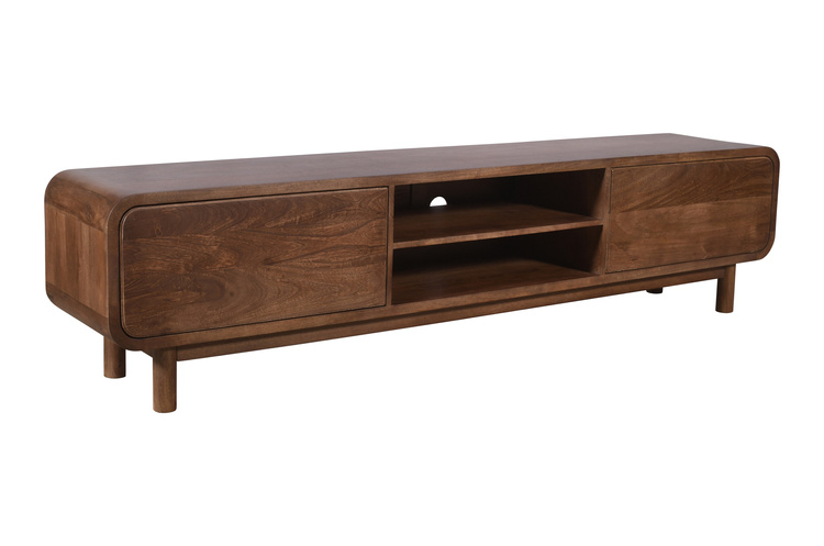 Duża szafka RTV 210 cm z litego drewna mango retro PRL mid-century – kolor orzech włoski BC-05-MWL