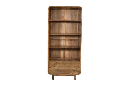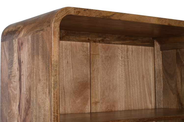 Regał drewniany z litego drewna mango 200 cm w stylu PRL retro mid-century – karmel BC-04-CR