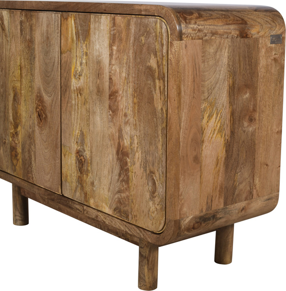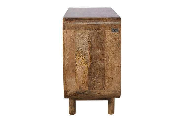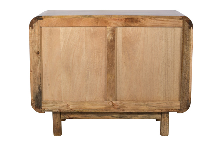 Komoda drewniana z drzwiczkami z litego drewna mango retro PRL mid-century – kolor karmel BC-02-CR