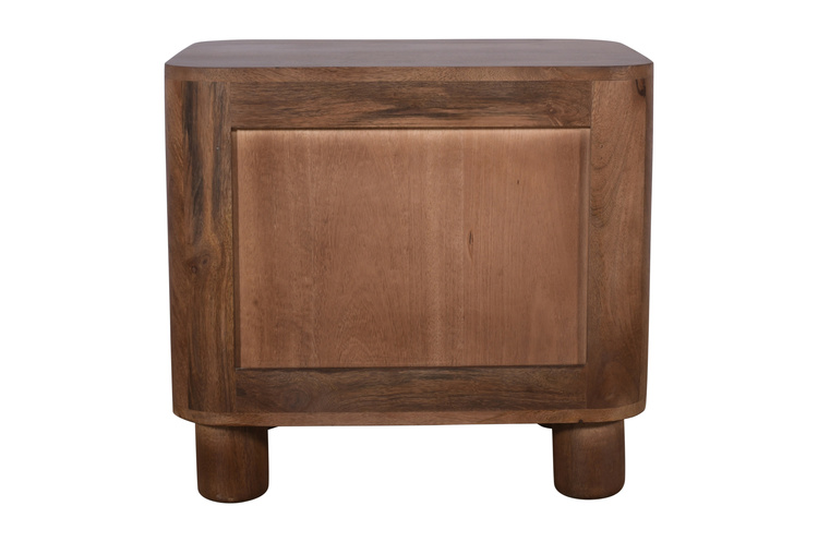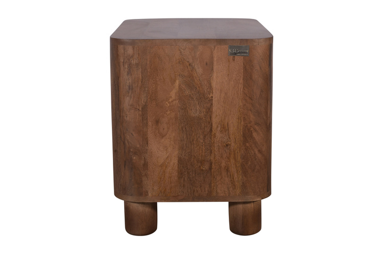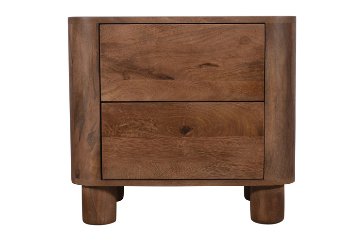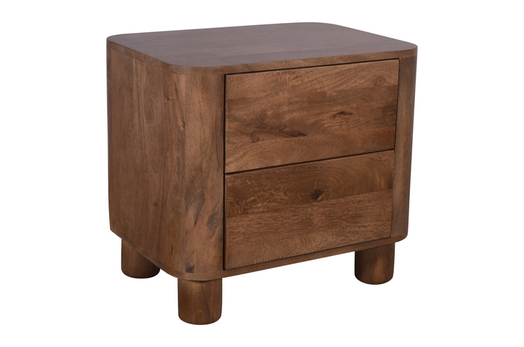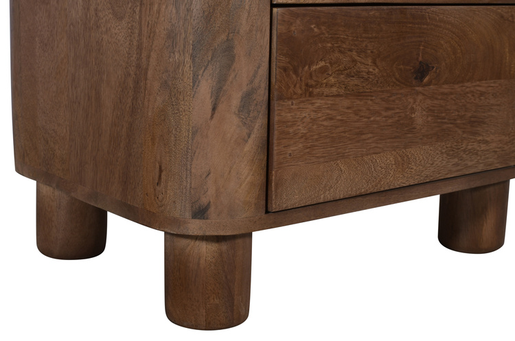 Szafka nocna drewniana, pomocnik drewniany mango japandi z litego drewna, zaokrąglone narożniki, dwie szuflady – kolor orzech włoski RM-09-MWL