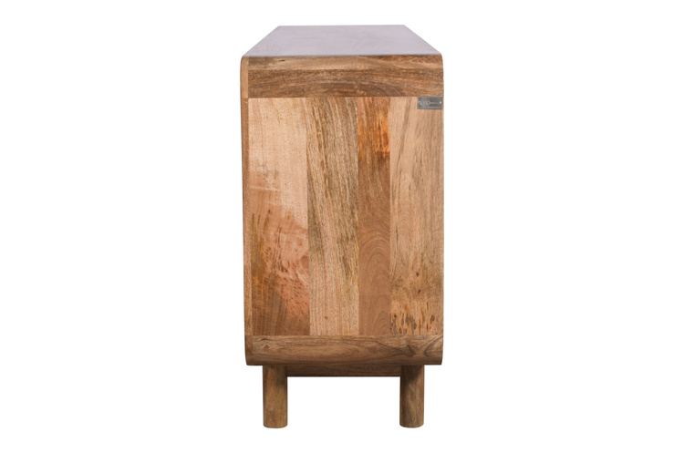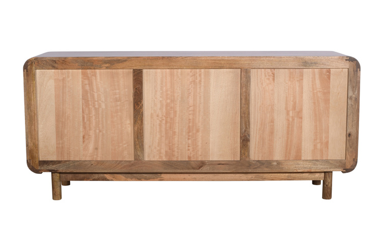 Komoda drewniana mango 180 cm z litego drewna z czterema drzwiczkami w stylu retro PRL mid-century – kolor karmel, BC-01-CR